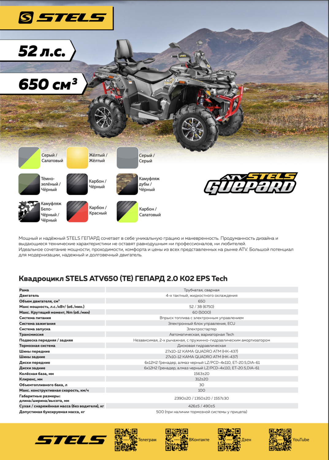 Квадроцикл Stels ATV 650G GUEPARD комплектация К02